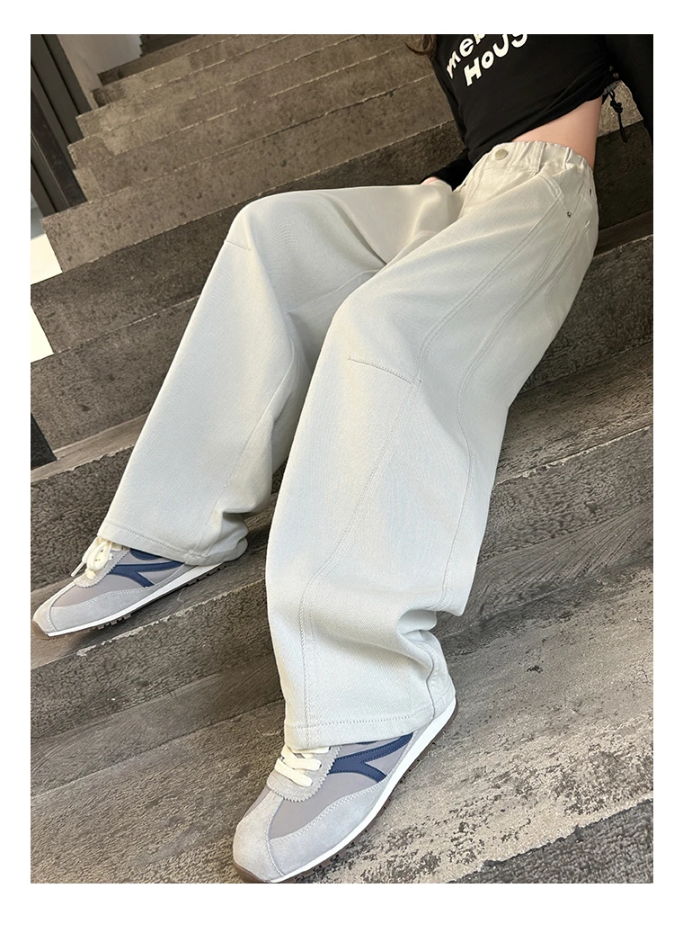 High quality plain color jeans for girls, spring and autumn 2025 new style, medium and large children's pants 4-16year